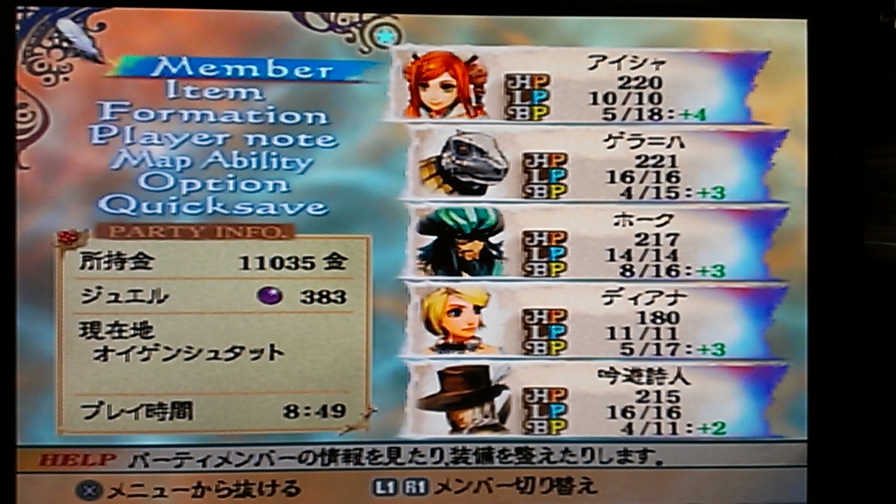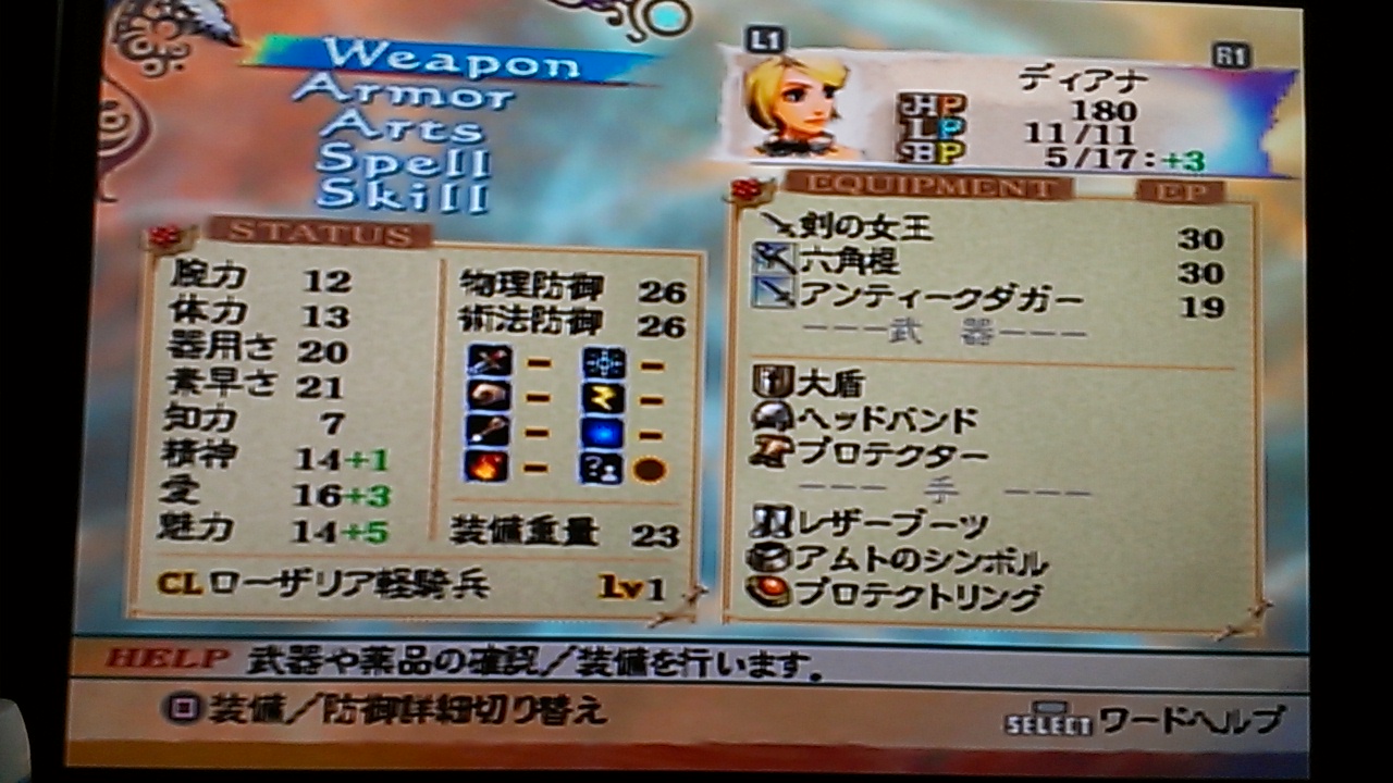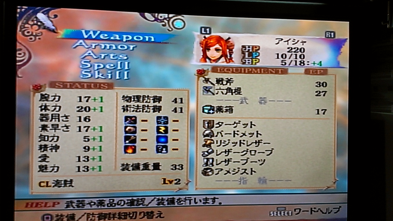 2014/10/26 Category : ゲーム 【ミンサガ2週目】アイシャ編プレイ日記・その2 メモ代わりに色々書いときます。 とりあえず丁寧に出来るイベントをたくさんこなそうと決意。ウエストエンドに行き「開拓村の誘拐事件」をクリアー。次に「騎士団の誇りにかけて」に挑む。今回はテオドールとラファエルを入れてみたかったので、詩人さんとディアナこと穴姐は一旦外し、オイゲンシュタットへ。こちらも難なくクリアーできたけどラファエル弱すぎ…。(´・ω・`)どうでもいいけど騎士見習いはヘソ出していいの?衣服の乱れは心の乱れじゃないの?再びワロン島で穴姐と詩人さんを拾って次はフロンティアの「サオキの魔物」へ。3層のダンジョンで各階のボスを倒す。彼ら「サルーイン様にアピールするために暴れてるんだァーッ!」って言っていたけど、そういう手柄(?)を立てるとなんかいいこと有るんだろうか?そういうタイプにも見えないけどな、サルーインって。でもまあ魔物の中にもいろいろ地位とかが有るんだろう。大変だな。お次はリガウ島へ。恐竜の卵と財宝ゲット。ついでに古刀も。今回はどうしようかな。前回はアイシャに持たせ+7まで上げたら結構強くなったので誰かに持たせるのも悪くないかも。とりあえずそこは保留。次、ゴールドマインの金庫襲撃来ると思ってたら、リガウ島で戦闘しすぎたのか、終わってた……。あああああああ。しょうがないんでメルビルでネビルの依頼を請ける。ローバーンの地下に落ちて、魔物倒してなんか流れに乗って脱出。相変わらずアメドラみたいなノリの口調なジャン。すきwいつか仲間にしたいと思う。モニカに報酬もらって(前回はすっかり忘れてて、取りに行って最後の方にもらったw)迷いの蝶へ。こちらも余裕でクリア。いい話なんだけど父ちゃん、骸のペンダントとかファンキーな親父だったんだなあ、なんてちょっと思ったり。ファンキーなノリで森に出かけて帰らぬ人とは、ロックな人生すぎるぜ。ここへ来て、その時やるべきイベントが無くなってしまった。いや、四天王のところには行けるんだけどそれはどうせだからウハンジの娘のイベントの時に行こうと思っているので保留で。仕方ないので何度かバトルしてイベントランクを上げると来ました、「皇帝の奇病」!ホークおいたんに買ってもらった古文書持って図書館へ行き、アムトとエリスのシンボルをゲット。二つの月の神殿を目指すといました、ミニオン・ワイル。でも、こちらは知力を下げる技は持ってないし、HPが低すぎて死んじゃう……。ワイルに負けるとゲームオーバーにはならないもののシンボルを奪われたと出る。これってまた集めに行けばもらえるの?それともムーンストーン自体入手不可能って事になるのか?面倒だから試していません。洞窟で何度か雑魚と戦ってたらゲラ=ハがイド・ブレイクを覚えてくれたもののBPが低すぎて毎度使えないうえ、全然知力下げられない。下げてもすぐスペルエンハンスされてしまう。どうしてもワイルに勝てないので、コンスタンツの方から片付けることに。ワイルに勝てないんだからムーンストーンを守ってるゾディアックにだって勝てる気がしないし。コンスタンツのことをフラーマに聞き、アイテムを貰ってコンスタンツの洞窟へ。ここはちょっと面倒な仕掛けがあるけどダンジョンの構造自体はほぼ一本道だし余裕。しかしボス戦では数度倒される。まぁここはゲームオーバーにはならないし修行だと思って何度も挑んでるとゲラ=ハがでたらめ矢を覚えてくれたりしたんだけど、結構ミスが多い。器用さが低いせいかな…。うう。BPも低いし別のキャラに弓矢持たせようかな…。それか器用さを上げる特訓でもするか。弓技を使うと器用さは上がるらしいけど。ゲラちゃんは上がりにくい構造なのかもしれません…。まあなんだかんだで何度か戦っているうちに倒し、名誉騎士の称号をやるでーと言われたけど、10回ぐらい必死で断り続けて報酬金アップさせたった。今回のアイシャはなんせ銭の亡者やからな!名誉よりも銭じゃあ!!(どんなアイシャだwだけど乙女一人生きていくのはそれだけ厳しいのでござるよ…)断り続けたら報酬額アップするってのは最近知ったので、ホークの時だって知ってたら断ってたわい。名誉騎士になったって特にいいこと無いもんな。エンディングの騎士団領メンバーのとこのセリフが変わるぐらいかな?にしてもまあ、前回も思ったけど、このぐらいのイベントこなした段階にしてはなんか弱いなあと思うんだよねえ。これじゃ絶対ゾディアックになんて勝てない。パーティメンバーがアレすぎるんでしょうか。ちゃんとした主人公キャラと言えばアイシャとホークだけだもんなあ。バトルしてステ強化してたら皇帝の奇病終わっちまうのは見え見えだ。うーん。奇病イベントの報酬でもらえる武器が貰いたいたんだけどなあ…。調べた所、細剣では最強の物らしいので。フリーシナリオで一番悩むところですね。あ